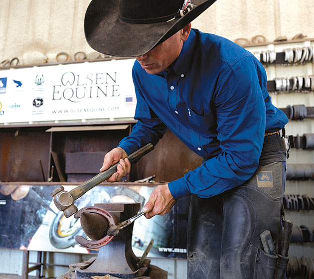 There is an array of factors that a farrier considers with each shoeing, with breakover being of central importance, along with shoeing for balance, selecting the proper shoe, examining hoof quality, therapeutic farriery services and considering diet and nutrient deficiencies. Lee Olsen, CJF, is working on a shoe.