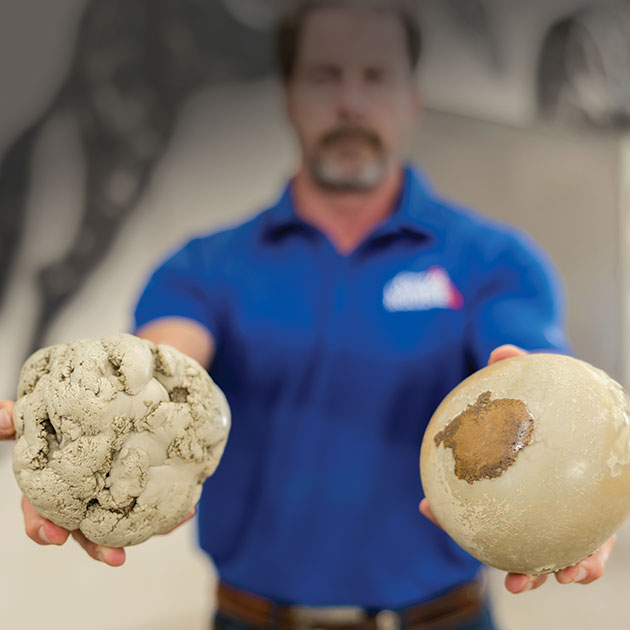 Similar to the small intestine, colic cases involving the large intestine can be broadly classified as either strangulating obstructions (twisted or entrapped intestine) or non-strangulating obstructions (feed impaction or displacement) and can also include an inflammatory component (colitis) or infarctive disease (blockage of blood supply). Of non-strangulating cases in the large colon, Dr. Hassel explains, “These obstructions are probably one of the more common types of colic we see in the field. These are the cases when your horse stops passing manure, your veterinarian comes out, they administer a laxative, provide fluids and a little bit of pain control, and often the horse will start passing manure again after a period of time.” Additional forms of non-strangulating obstructions can be seen in enteroliths (mineral stones of varying sizes, formed around a nidus and comprised of magnesium, ammonium and phosphorus), sand impactions and displacement cases where the blood supply to the large intestine remains intact but a portion of the large intestine moves out of its normal position, causing an obstruction.