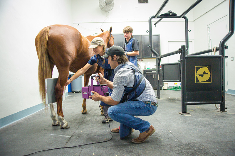 Undoubtedly one of the most significant factors in successfully treating soft tissue injuries, aside from regenerative therapies, is the exponential gains seen in the science of rehabilitation. Veterinary-directed rehabilitation has surged forward in recent years with the advent of new technology and techniques, as well as the founding of the American College of Veterinary Sports Medicine and Rehabilitation. Veterinarians and surgeons alike were previously frustrated that they would treat a horse or operate on a soft tissue injury only to send the horse home to be confined to a stall with no active rehabilitation plan. This approach differed greatly from human medicine, where physical therapy is a mainstay in the recovery process. “We don’t just stick horses in box stalls for 4 to 6 months anymore,” says Dr. Fortier. Rehabilitation and active rehab go so much further than simply controlled forms of exercise, but now include extremely effective modalities and a solid place for therapeutic nutrition. “Modalities like Shockwave therapy, laser therapy, therapeutic nutrition, proper farrier application and regenerative medicine are all key components,” says Dr. Fortier. “All of these things combined have increased our chances of not only getting the horse back to performance but sustaining performance. I tell my clients that they have to be committed to the rehab. It’s a least half of the equation in terms of the horse’s chance of recovery.”
