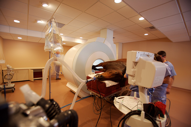Perhaps one of the greatest factors in determining the prognosis for a soft tissue injury is in obtaining a proper diagnosis from the outset. With vast improvements in the field of diagnostic imaging, today’s veterinarians have the advantage of accurate information and a better understanding of the scope of the injury. MRI is now seen as the gold standard in diagnostic imaging related to orthopedic injuries. “MRI utilizes a strong magnetic field — 30,000 times as strong as the earth’s magnetic field — to orient the atoms of the body,” explains Dr. Carter Judy, a boarded surgeon at Alamo Pintado Equine Medical Center in California, who is widely recognized as a world leader in reading and interpreting MRI results in the horse. “By changing this field temporarily, these atoms react and emit radio waves, which are detected and interpreted by a computer to create the image,” he says. “No radiation is used, and there are no known side-effects to the use of MRI at this field strength in the horse. At Alamo Pintado, we use a high field (1.5T) Siemens Magnetom Espree. This system allows for effective, time-efficient imaging of orthopedic, soft tissue and head/ brain pathology of the horse.” The use of MRI has drastically changed veterinarians’ capabilities in terms of properly identifying, then treating soft tissue injuries in a more timely manner. “This has been a game changer for so many horses that were previously going undiagnosed for a long time,” says Dr. Jackie Hill, a boarded surgeon at Littleton Equine Medical Center in Colorado.