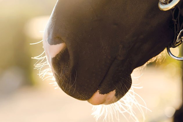 The new term more accurately encompasses the broader spectrum of breathing concerns in afflicted horses. “Asthma, as it stands, is a disease characterized by inflammation of the lower respiratory tract or the lungs and usually manifests in the form of coughing and shortness of breath,” Dr. Coleman says. Environmental allergens such as molds, spores, dust and pollen are the most common cause of flareups. Once inside the nasal passages, these irritants trigger the immune system to protect the respiratory tract with airway inflammation and mucus production resulting in bronchoconstriction and excess mucus that narrows the airways in the lungs and makes it difficult for the horse to breathe. This results in the classic symptoms of continuous coughing and heavy breathing.