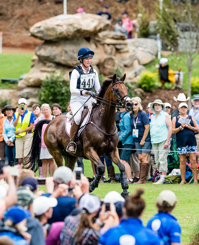 It could be said that Nicholson has taken a horse from rags to riches — twice. After Maggot’s retirement from elite eventing following the RK3DE, Nicholson did not have the money to invest in another ready-made four-star eventer and took a leap of faith by purchasing Maggot’s full brother, Vermiculus, an unproven two-year-old colt. While very stately sounding, Vermiculus translated from Latin means “little worm or grub,” so-called as a nod of brotherly love to Maggot. Nicholson has guided the brave, talented and very cheeky “Bug” at his own pace up the ranks from an unruly novice through five-star competition and has made him into the professional that he is today. Because of her equine “insect collection,” Nicholson is very familiar with taking one’s time and the tireless patience that goes into bringing along a Championship horse — and knows firsthand that they do not necessarily display star power from the onset. Vermiculus was not only a semi-feral young horse, but he was not particularly competitive as a three- or even a four-star horse; no one really knew him. Nicholson remembers, “Once he was given a five-star chance, then he was considered a proper competitor and had a chance to prove himself.” In essence, the 4-mile tracks, 6-foot spreads and drops and solid obstacles finally got his attention. “A lot of my five-star horses, as young horses, I wouldn’t have picked them to be five-star horses,” she says, laughing. “The longer I do this sport, the more I find that I can get to the three- or four-star level with a good athlete. The difference with the five-star horses is their brain. Up to the 4-star level is almost an entirely different animal from a five-star one.”