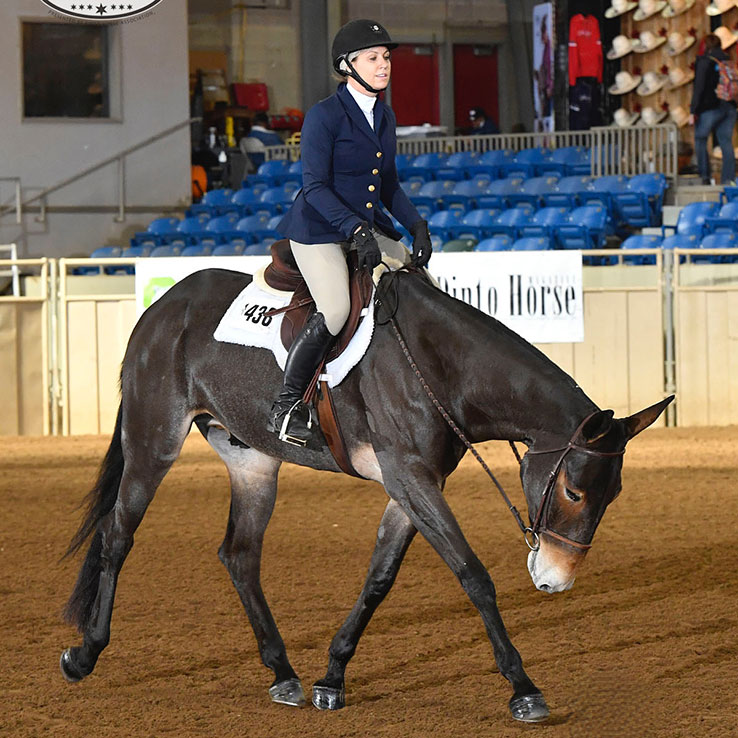 Mules and donkeys have been used for thousands of years to assist in the daily lives of people around the globe, but, over time, riders have recognized their athletic ability and versatility as well. “Mules can jump, excel in a reining pattern, work in the cutting, perform in dressage and pull in the driving. They’re not just beasts of burden, they’re incredibly versatile animals capable of a show career,” says Dr. McLean. She herself has seen tremendous success raising, riding and showing mules in numerous disciplines. “When horse people see their first mule show, their response is usually, ‘This is amazing. This is so much fun,’ ” observes Dr. McLean. “Mules aren’t as specialized as our horse world has gotten. You literally have to do everything, and, because of the mule’s athletic ability, they can successfully participate in so many events.” Mules are the ultimate all-around show animal who innately want to please and deliver what is being asked of them. “I love the mules’ personalities,” says Dr. McLean. “If they enjoy showing, if they like you, then they bond to you like a dog. Most horses will work for many riders, but the mules, if they don’t like what they’re doing or they don’t like you, you won’t get much out of them,” she says laughing. The opposite is equally as true. “If they respect you and you have that bond, they will do anything for you.” As Dr. McLean and other mule pilots have found, there are challenges in training mules that include the patience it takes to see things through. “Our all-around mules can take four to five years to train, and there are challenges in keeping them soft and flexible. You have to be more patient, but their longevity is remarkable.” Dr. McLean and her fellow mule riders find that mules deliver pure fun in a show setting. “Maybe our dressage is at a training level or first level, but to have half a donkey out there extending their trot and doing a shoulder-in when their natural response is to push against pressure, that’s incredible.”
