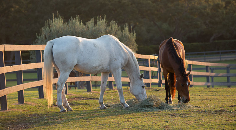 Pasture is nature’s perfect food for horses and is the single most important thing to prevent digestive issues and avoid colic. The fact is that horses on full turnout colic less than horses that are not allowed to graze in a natural setting. Clayton Smith, DVM, of Brazos Valley Equine Hospitals, says, “My clients that are able to keep their horses out on pasture 24-7 simply do not have the amount of colic issues as those with boarded horses because of the increase in gut motility that goes hand-in-hand with pasture grazing. There’s a lot of different causes for colicking horses, but straight to the top of the list is a lack of pasture and turnout time.” Grazing on pasture is the most natural way for horses to eat. Pasture grass is full of vitamins, minerals, fiber and naturally hydrated to move digesta through the gastrointestinal tract and an ideal rate of passage.