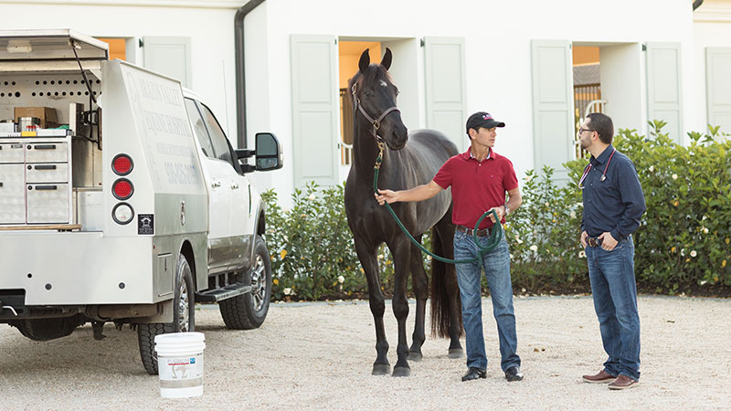 Being prepared and knowing what is normal for an individual horse and what is not can be critical when faced with a colic episode. Being able to take a horse’s vital signs, if you can do it safely, is valuable information. The normal temperature range for an adult horse is 99.5-101.5°F. The normal respiratory rate is 12-20 breaths per minute. Have a stethoscope on hand to take a pulse; normal range is 30-42 beats per minute. Under the horse’s lip, the gums should be moist and pink. If they are tacky or red and take longer than 2 seconds to refill when pushed with a finger, that is not normal. If anything seems abnormal, call the veterinarian. As is the case for most vets, Dr. Smith has seen plenty of colics of all different etiologies. “What helps the most when a horse is showing signs of colic and time is critical, is having an owner that is capable of telling me the severity of the situation before I am able to get there and evaluate the horse in person. Being able to take a temperature, evaluate the respiratory rate and pulse, check mucous membranes and listen for gut sounds, lets me know a whole lot about the situation. Have there been any changes to their routine? Have any medications been given? Being able to do a simple physical and answer general questions allows me to know if I can treat the horse medically, or if he needs to get loaded on a trailer to go to the hospital immediately.”