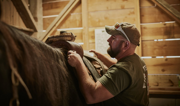 One of the beautifully organic things about the program is that veterans learn without being taught, simply by touching, grooming and riding the horses together with fellow soldiers who understand them. “The effect that the horses and the farm have is crucial,” says Benson. “It’s an environment by design and allows these veterans to be comfortably vulnerable. They have to be honest with themselves here but whatever happens, happens. No one is there telling them that they have to talk about anything. But all the sudden you’re surrounded by a group of people where you can say something that civilians would hear and it would be foreign. If you say it around us, we get it. We’re in our comfort zone.” A pillar of the program is restoring purpose, a goal that Benson pursues fervently with each veteran who steps onto the ranch. “If you have purpose, then you have drive,” he says with conviction. This is very often the foundation that crumbles when veterans move into civilian life, leaving behind the military and the clearly-defined purpose they knew.