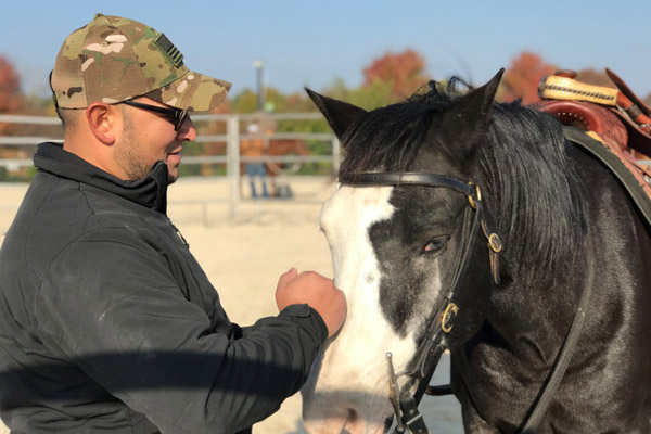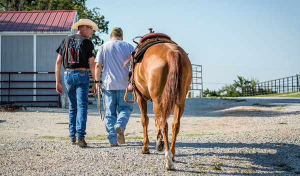 The program offers horses of every level and caliber, from steady ranch horses to more sensitive and finely tuned ‘sports cars,’ as Benson calls them. Regardless of their level, each of the program’s horses are well-bred, in exceptional shape and cared for to the highest level, which includes a consistent exercise program and specially-designed nutrition regimen supported by Platinum Performance® formulas. “Horses are so powerful, and they know it,” says Benson. “It’s all about trust. You’re on the back of a horse, and if that horse really doesn’t want you there, then you’re not staying on. You have to trust the horse, and on the flip side, the horse has to trust you. It builds a bond and a connection that, a lot of times, has been shut off for a long time.” Through their interactions with the horses, veterans see how movement, stress level and even breathing impacts the behavior and performance of the horse. “I tell them ‘just breathe,’ then, your diaphragm relaxes and the horse relaxes. When they start learning those things, it makes a big impact on their life and their ability to cope and calm themselves down.” Over the course of each three-day program, Benson watches as each veteran’s shell chisels away. It’s a combination of the lessons taught by the horse and their time back together with their fellow soldiers, regaining confidence, a sense of community and the empowerment of support, humor and direction. “Any of us in the horse industry knows that you get on these horses and you’re literally in the clouds,” says Benson. “The horses are a vital part of the program because I have yet to see anything break the ice like they do. The veterans are talking to each other while they’re grooming a horse, they’re learning to ride, they’re jumping, they’re riding reiners, they’re laughing and telling stories. I want them to know that the sky is the limit.” Veterans go at their own pace and learn that with horses there’s no faking your level of fear, tension, comfort or calm. If you feel it, they feel it. It’s lessons like this that help veterans understand how to better control their emotions for the benefit of not only themselves, but the people in their lives. “I was very timid at first,” recalls veteran and program alumni, Jeremy H. “But I quickly began to loosen up with the guiding and teaching of Patrick Benson. I’ve yet to meet someone as knowledgeable in horsemanship as he is. Horses have this intuitive and supernatural ability to mirror what you put out in terms of emotions. Being prey animals, they force you to be authentic and dig deep inside in order to be able to work with them. Grooming and riding have an ability to calm you and force you to be present in the moment, which vets struggle with. I left feeling confident, wanting to serve again and with a sense of purpose I had longed for since getting out of the Army.”